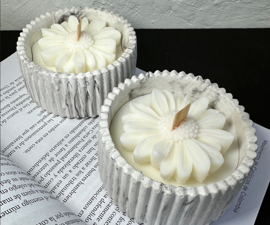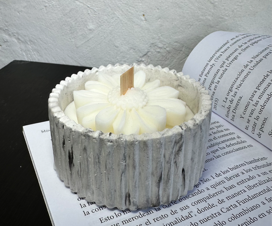 Dale a tu hogar un toque de sofisticación y calidez con nuestro #VasoVela de arte en concreto con tonos marmolesdos y aromas envolventes.